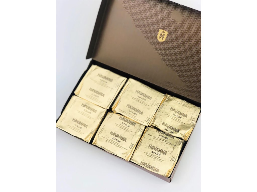 - 6 x Alfajores plněné dulce de leche s čokoládovou polevou ( 1 ks = 47 g )