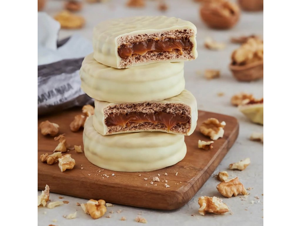 Havanna Alfajores Nuez jsou jemnou variací na tradiční argentinské sladkosti. Značka Havanna, založená v roce 1948 v Mar del Plata, je dodnes symbolem argentinské cukrářské tradice a kvality, přičemž alfajores jsou považovány za její nejikoničtější pochoutku.