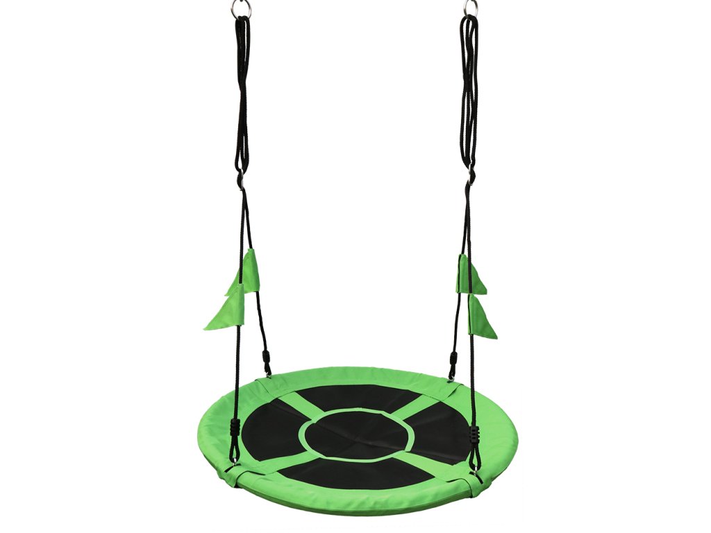 Houpačka Čapí hnízdo s vlajkami v zelené barvě z pevného materiálu se dvěma kroužky a karabinami pro zavěšení. Nezbytný pomocník pro objevitele venkovní zábavy na moderním dětském hřišti. Hlavní vlastnosti: nosnost: 150 kgpevný a odolný materiálkonstrukce z trubky o síle 2,5x0,1 cmDoplňkové parametry