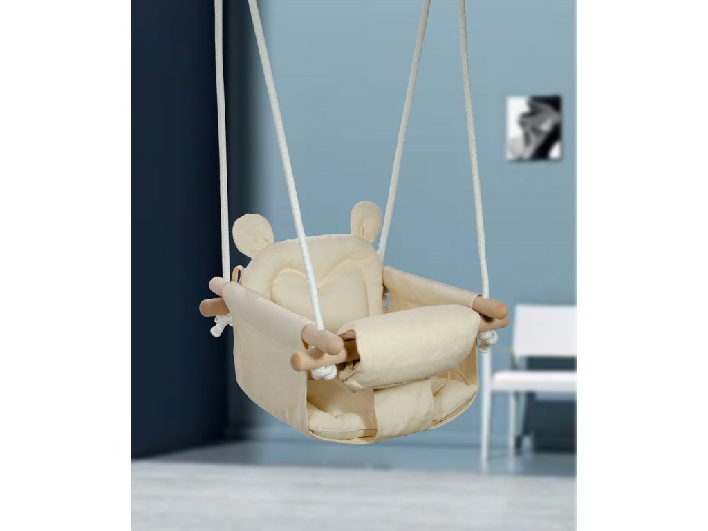 Komfort, bezpečí, zábava... méďa přesně ví co spokojená miminka potřebují! Tato dětská houpačka nabízí nejen spousty hodin legrace ale i aktivní odpočinek. Konstrukce z bukového dřeva a sedátko ze 100% bavlny zajišťují plné pohodlí a bezpečnost při houpání. Lana se 2 karabinami jsou výškově nastavitelná (až 180 cm). Díky tlumeným barvám a jednoduchému designu je houpačka také brilantním doplňkem do pokojíku! Hlavní vlastnosti: nosnost 60 kgvýškově nastavitelné lano (max. 180 cm)vyrobeno ze 100% bavlnyroztomilý design s medvídkemDoplňkové parametry