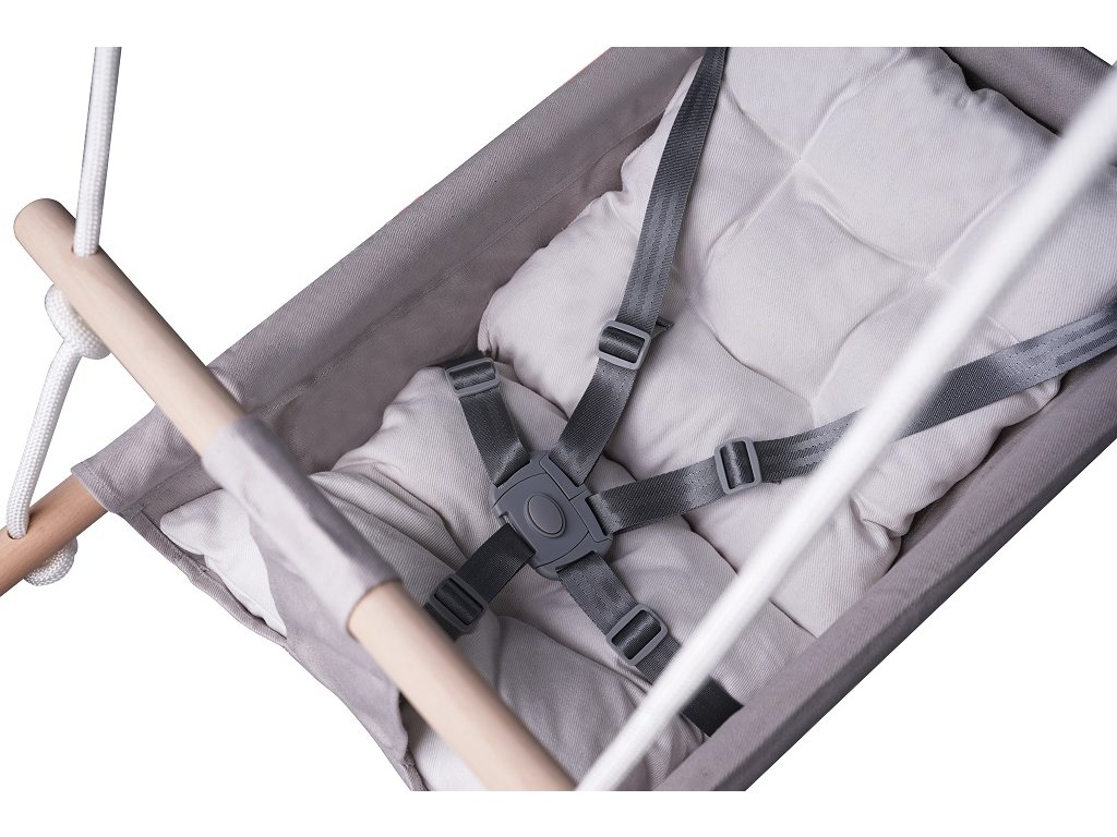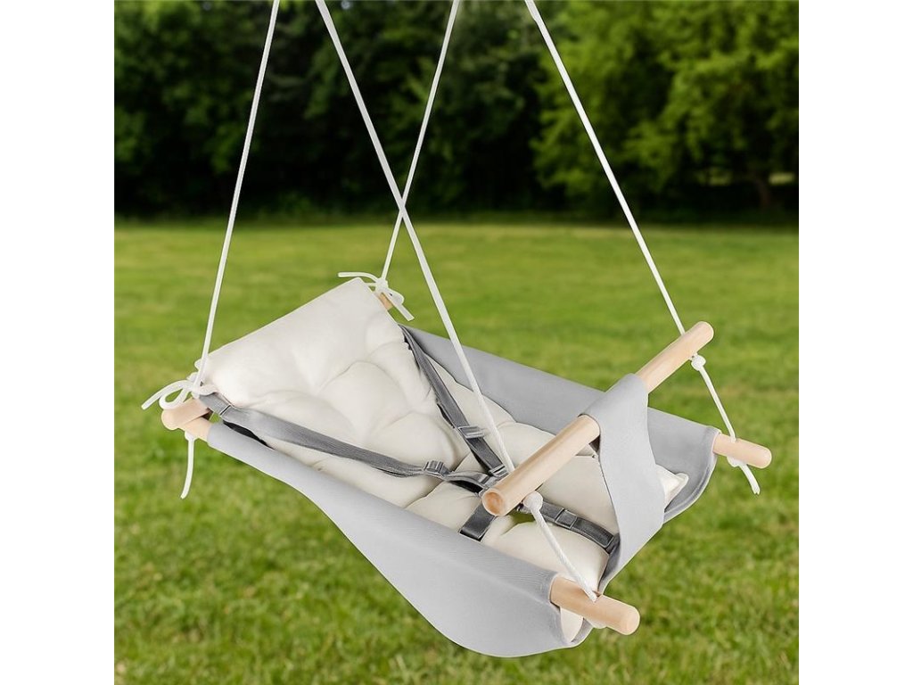 Komfort, bezpečí, zábava... každý přece ví co spokojená miminka potřebují! Tato dětská houpačka nabízí nejen spousty hodin legrace ale i aktivní odpočinek. Dřevěná konstrukce a sedátko ze 100% bavlny zajišťují plné pohodlí a bezpečnost při houpání. Díky tlumeným barvám a jednoduchému designu je houpačka také brilantním doplňkem do pokojíku! Hlavní vlastnosti: nosnost 60 kgvýškově nastavitelné lano (max. 180 cm)vyrobeno ze 100% bavlnymoderní designDoplňkové parametry