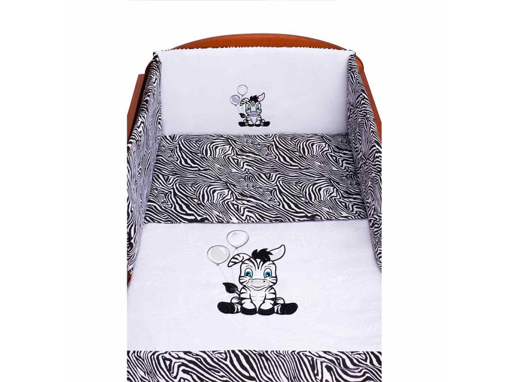 Dětská bavlněná 3-dílná souprava do postýlky New Baby Zebra pro miminka. Soupravu zdobí veselý obrázek zebry s pruhy a je celopotištěná výraznými černobílými pruhy. Je vyrobena z měkkého, příjemného materiálu. Souprava obsahuje povlečení na polštářek cca 40x60 cm, povlečení na peřinku cca 100x135 cm a mantinel cca 180 cm. Materiál 100% bavlna.Tyto výrobky jsou bezpečné, protože:
