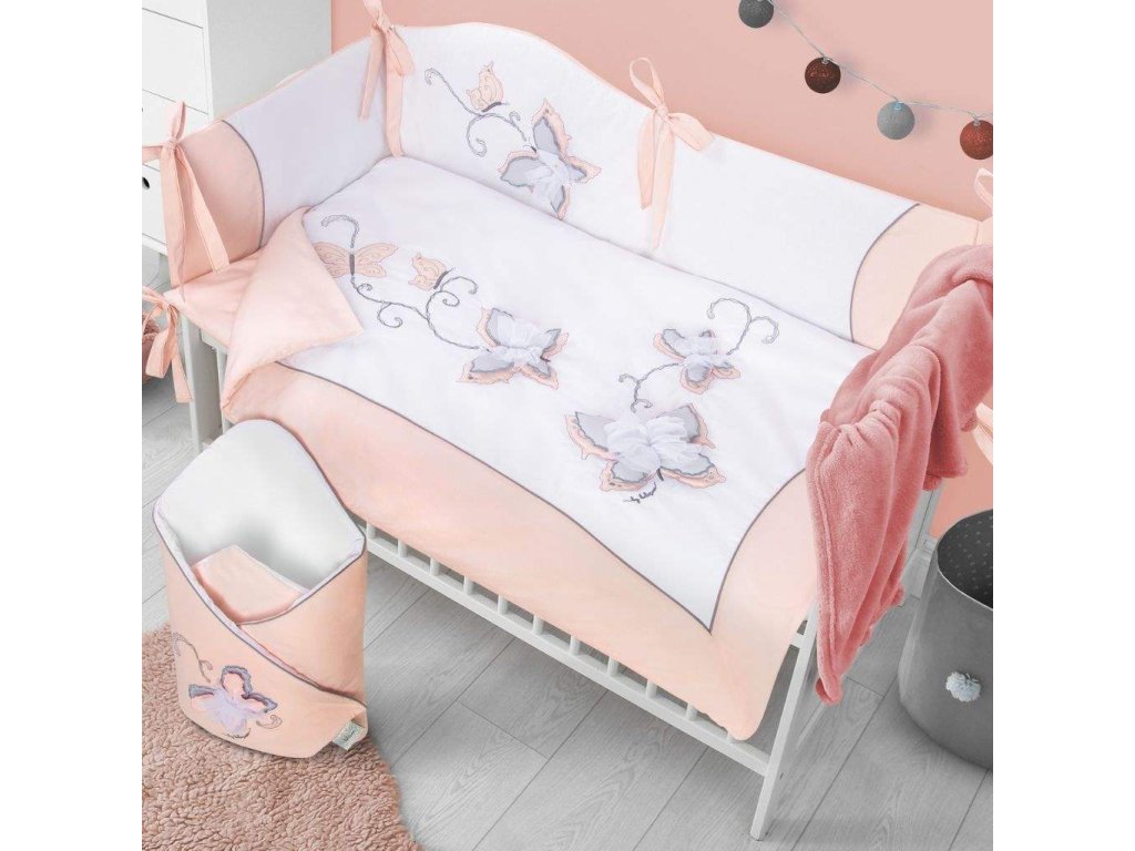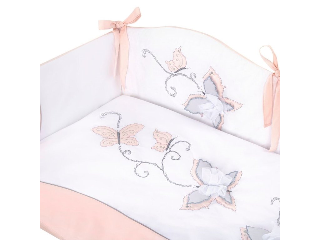 Krásná dětská bavlněná 6-dílná souprava do postýlky Belisima Butterfly pro miminka. Je vyrobena z měkkého, příjemného materiálu. Souprava obsahuje povlečení na polštářek cca 40x60 cm, povlečení na peřinku cca 100x135 cm, mantinel cca 180 cm, výplň polštářek a peřinka, nebesa. Materiál 100% bavlna.Tyto výrobky jsou bezpečné, protože: