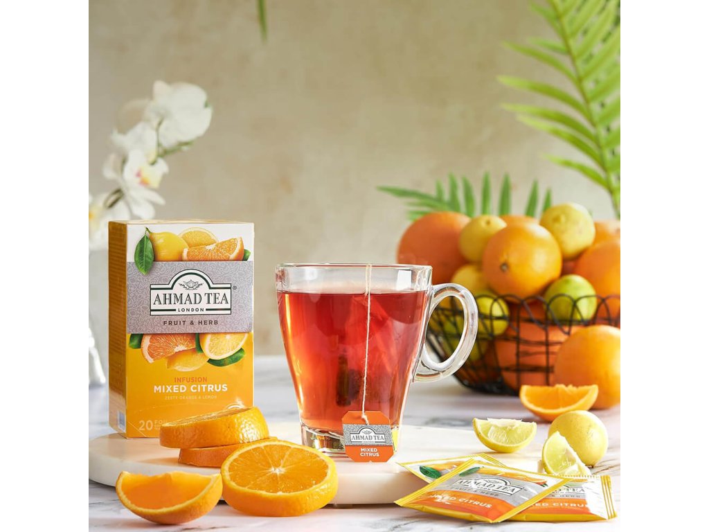 Ahmad Tea Mixed Citrus je osvěžující ovocný čaj, který přináší živou a harmonickou kombinaci citrusových chutí. Svěží tóny citronu a pomeranče se v této směsi jemně doplňují s lehkými podtóny jablek, šípků a ibišku.
