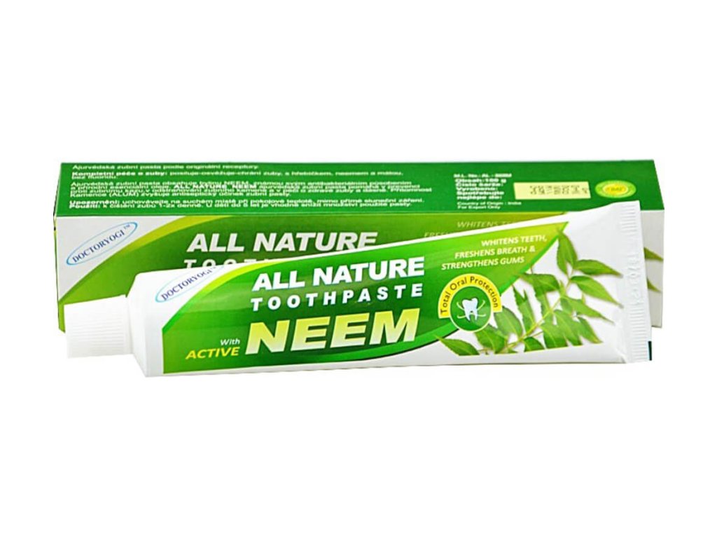 Zubní pasta All Nature Neem je bylinná zubní pasta bez fluoridu s hřebíčkem, neemem a mátou. Obsahuje extrakt z ájurvédských bylin (vasaka, opíhled skvělý, vrcholák myrobalánový).