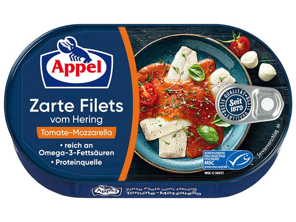 Sleďové filety v rajčatovém protlaku s mozzarelou jsou skvělou a zdravou svačinkou. Již více než 135 let je společnost APPEL FEINKOST prvotřídním výrobcem kvalitních rybích výrobků.