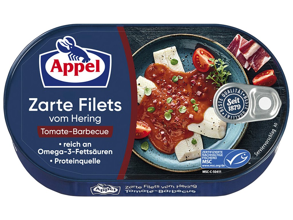 Jemné sleďové filety v barbecue rajčatové omáčce jsou skvělou a zdravou svačinkou. Již více než 135 let je společnost APPEL FEINKOST prvotřídním výrobcem kvalitních rybích výrobků.