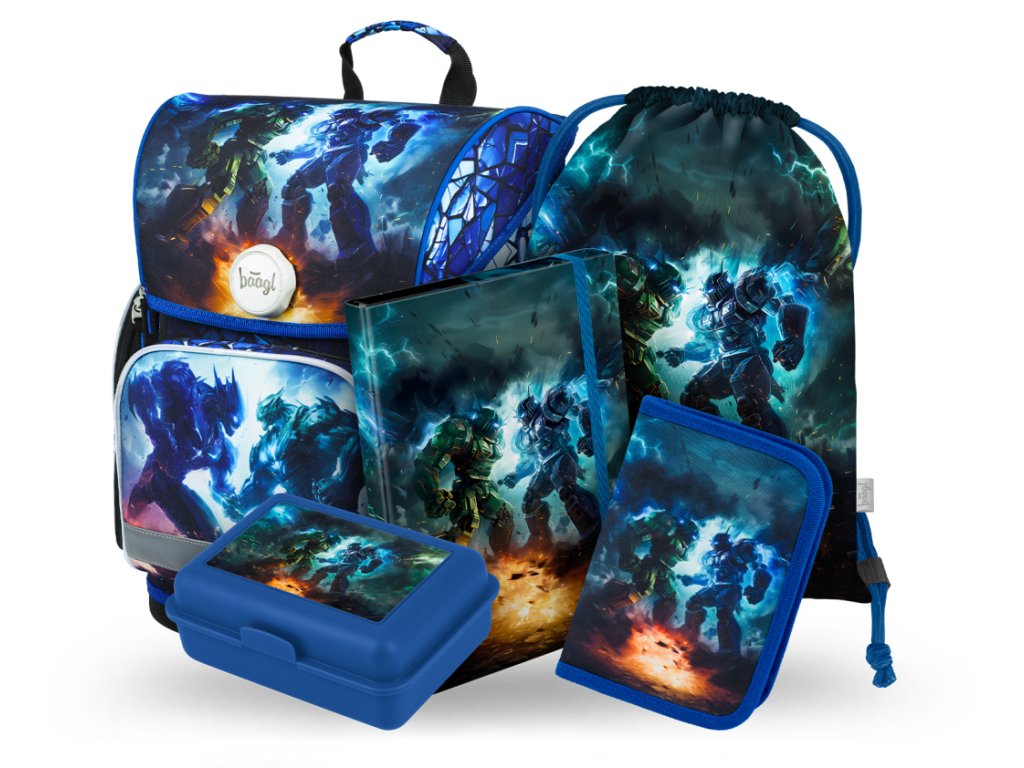BAAGL 5 SET Ergo Roboti: aktovka, penál, sáček, desky, box