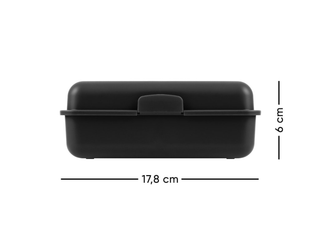 • Plastový box na svačinu v černé barvě.• Box má uzavírání na jeden zámek a dělicí přepážku.