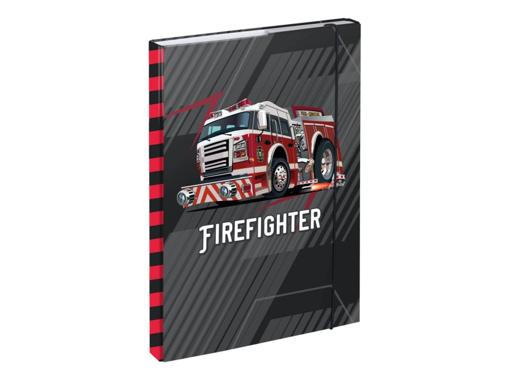 Desky na školní sešity v černé barvě s obrázkem hasičského auta. Výrobcem je česká firma Baagl, která se vyznačuje vysokou kvalitou výrobků, precizním zpracováním a atraktivním designem školních potřeb.