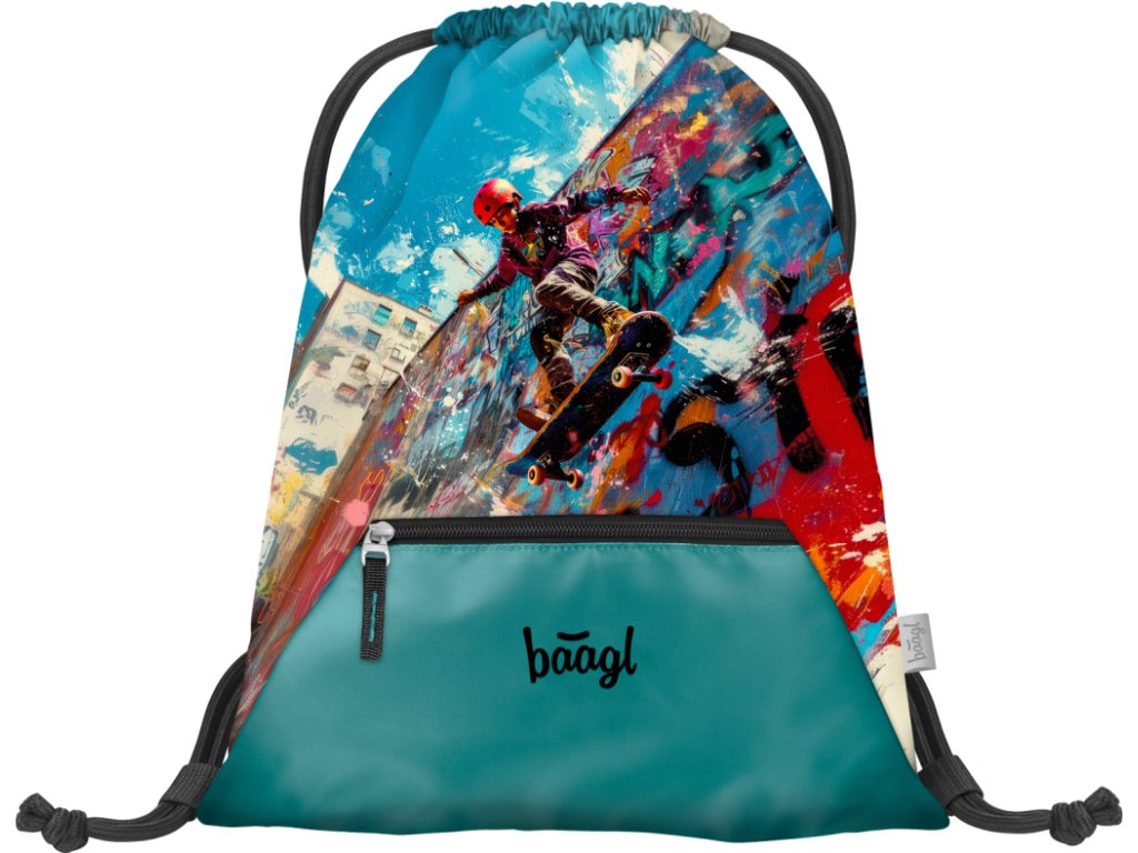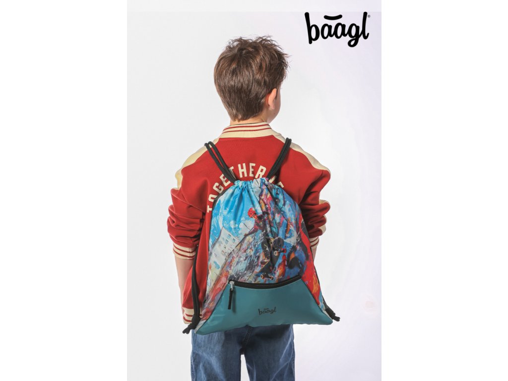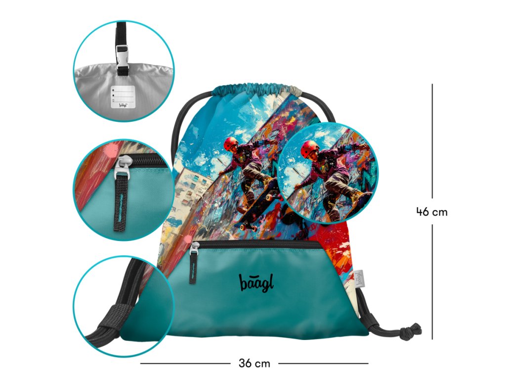 • Praktický sáček s kapsou na zip je vhodný nejen na přezůvky do školy, ale také na cesty, do města, na sportovní či jiné volnočasové aktivity.• Vyroben z pevného, omyvatelného materiálu a vybaven pevnými tkanicemi pro pohodlné nošení.