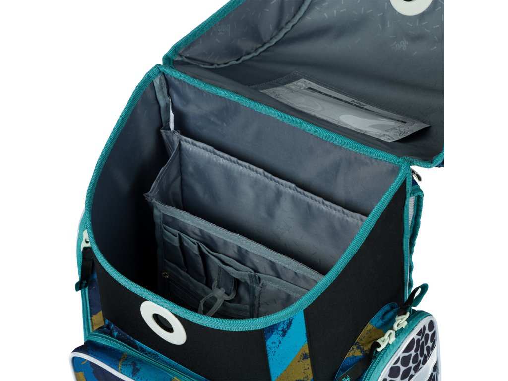 • Uvnitř aktovky je průhledná kapsa s rozvrhem a vnitřní organizér umožňující rovnoměrné rozložení hmotnosti.