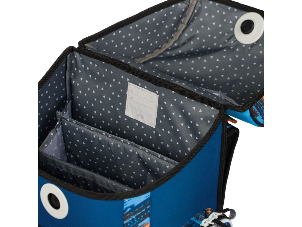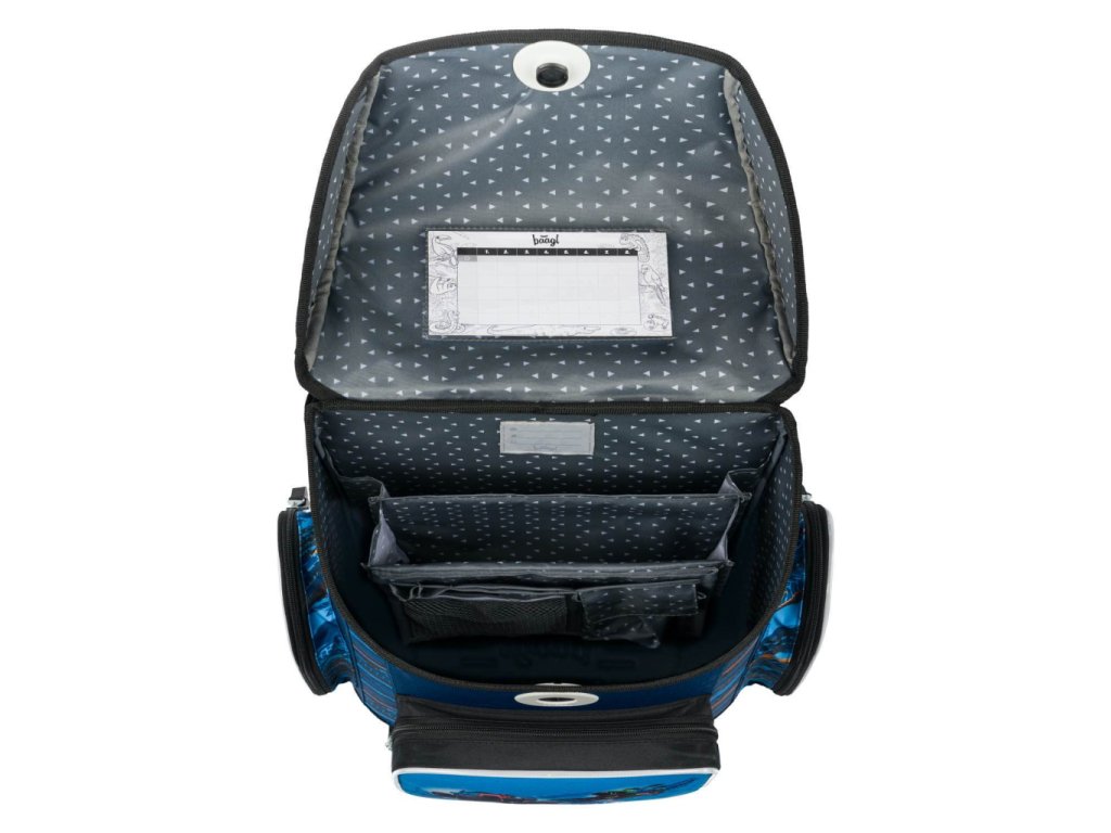 • Uvnitř aktovky je průhledná kapsa s rozvrhem a vnitřní organizér umožňující rovnoměrné rozložení hmotnosti.