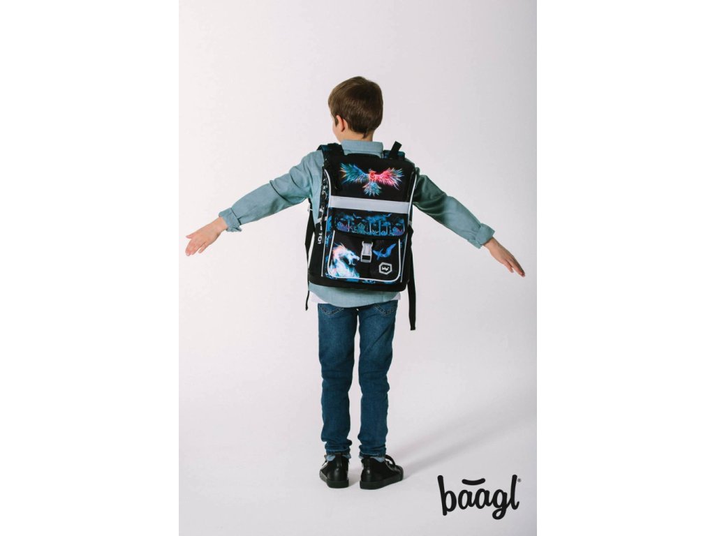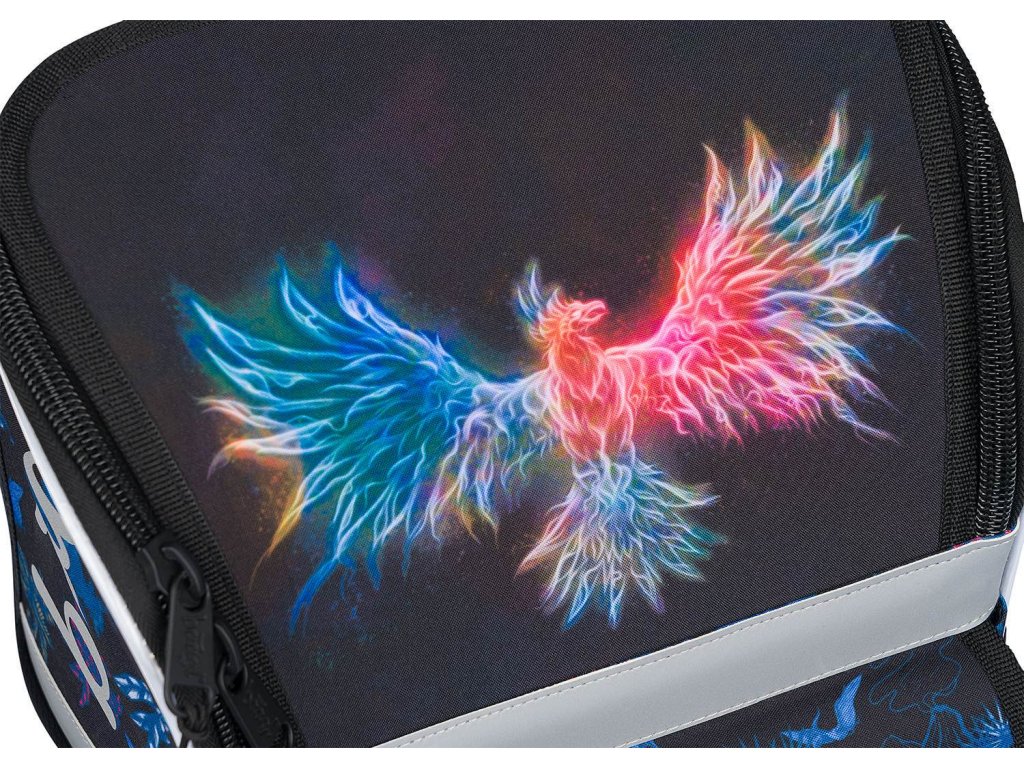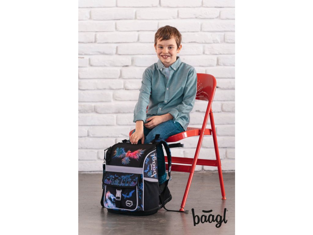 Černá aktovka Zippy Fénix s potiskem bájného Fénixe, vhodná pro 1. - 2. třídu základní školy od české firmy Baagl. Rychlé dodání.