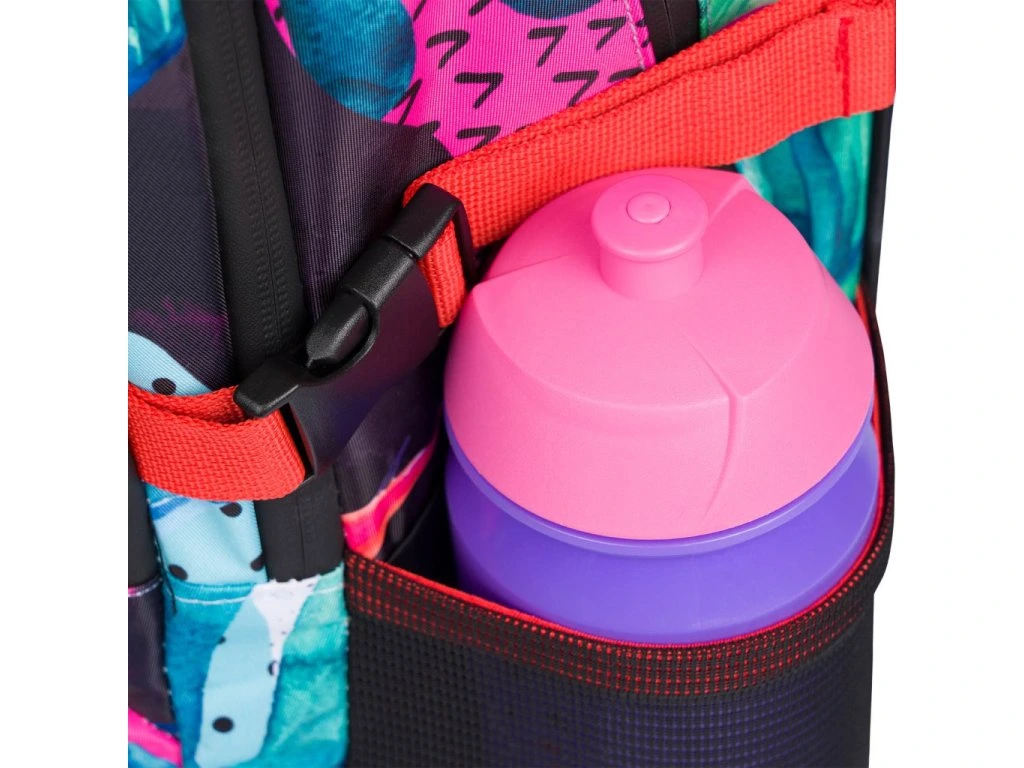 • Boční kapsy z pevné síťoviny, které jsou vhodné pro jednu z našich láhví na pití.