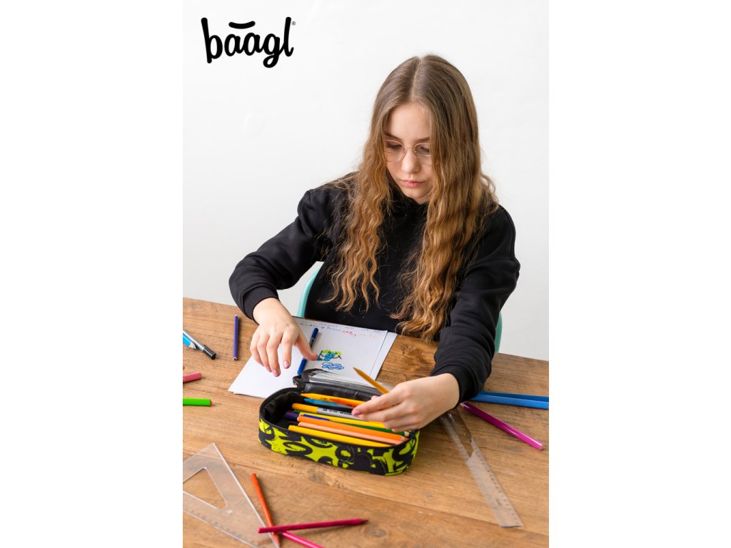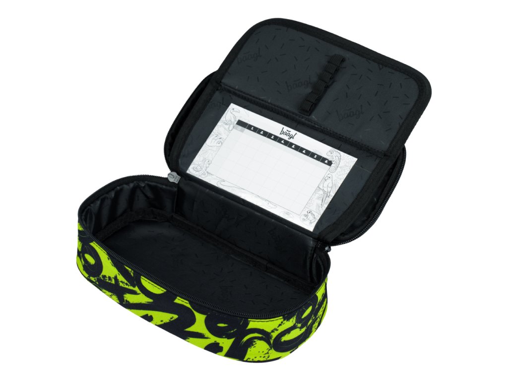• Pevný školní penál s výklopnou vnitřní přepážkou.• Vnitřní kapsa na zip a kapsa na rozvrh.
