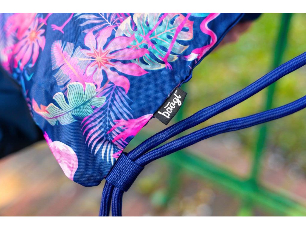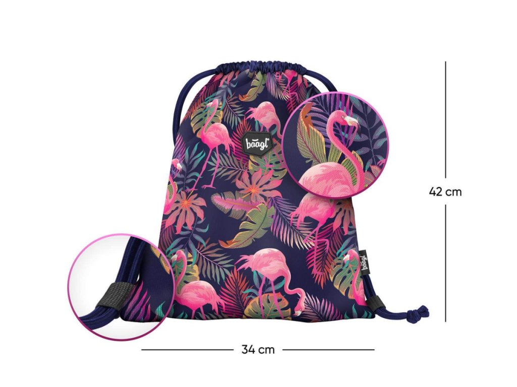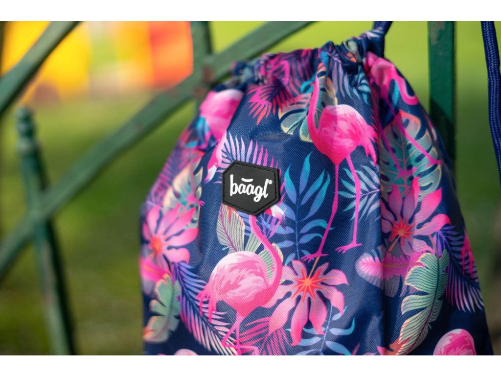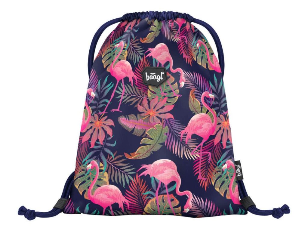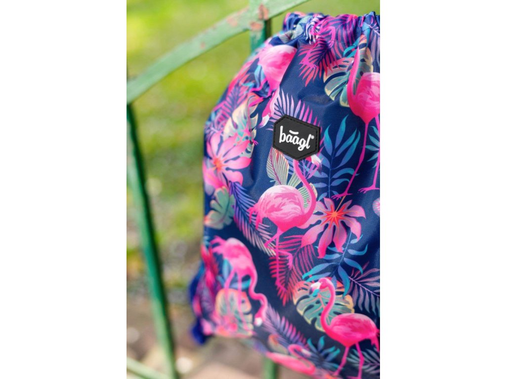 Dívčí sáček na cvičky nebo přezůvky s motivem populárních plameňáků z pevného omyvatelného materiálu. Výrobcem je česká firma Baagl, která se vyznačuje kvalitou výrobků, precizním zpracováním a atraktivním designem školních potřeb.
