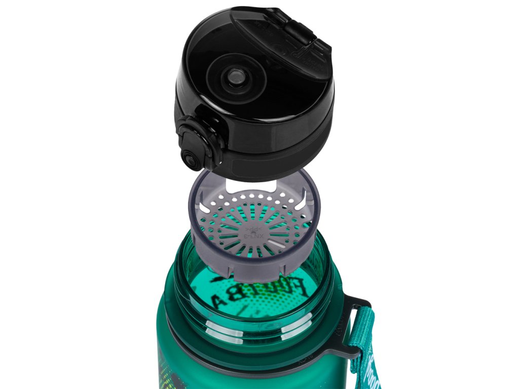 Uzamykatelné víčko nepropustí ani kapku nápoje a zaručuje jednoduché a intuitivní používání. Součástí láhve je i sítko, díky kterému můžete láhev použít i na limonády s ovocem nebo čaj (materiál je vhodný i pro horké nápoje). K láhvi je připevněné také poutko pro pohodlné nošení v ruce.