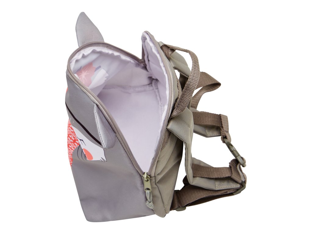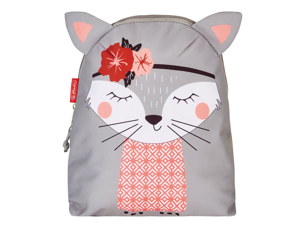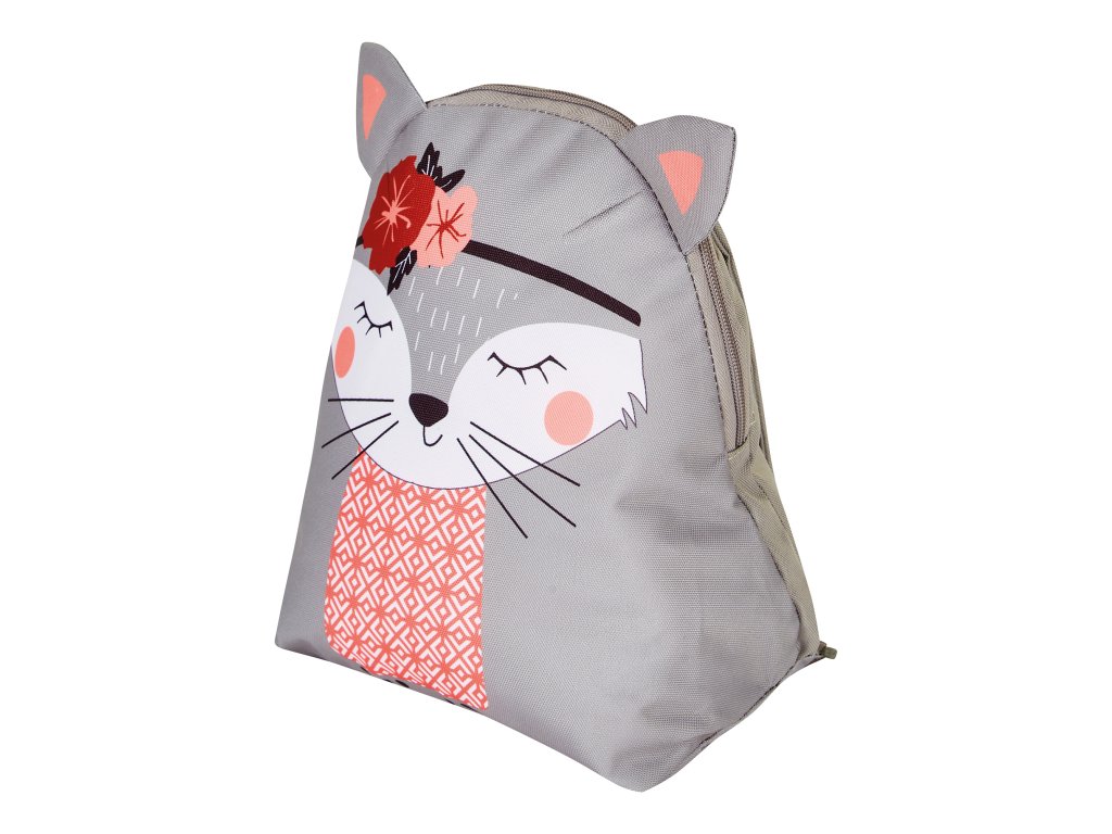 nastavitelné ramenní popruhy, hrudní popruh, 1 hlavní přihrádka, zapínání na zip, tvář koťátka a uši koťátka ve předu, prázdný, 29 x 23 x 10 cm