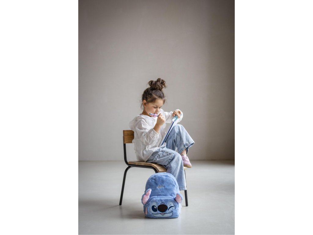 - Popis: Plyšový batoh v modré barvě s vyobrazením postavičky Stitche, vyrobený z umělé kožešiny.