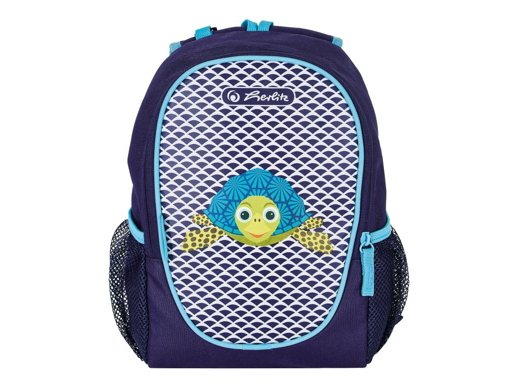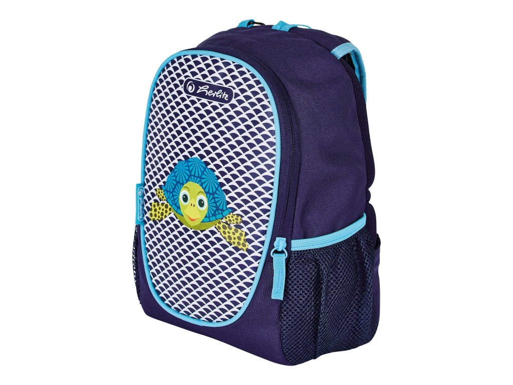 želva, ergonomicky tvarovaný, prodyšný polstrování zad, nastavitelná ramínka, pružný hrudní popruh, jmenovka, prostorná hlavní přihrádka se zapínáním na zip, 2 boční kapsy na gumičky, rozměry: 29x21x10 cm, objem: cca. 6,5l