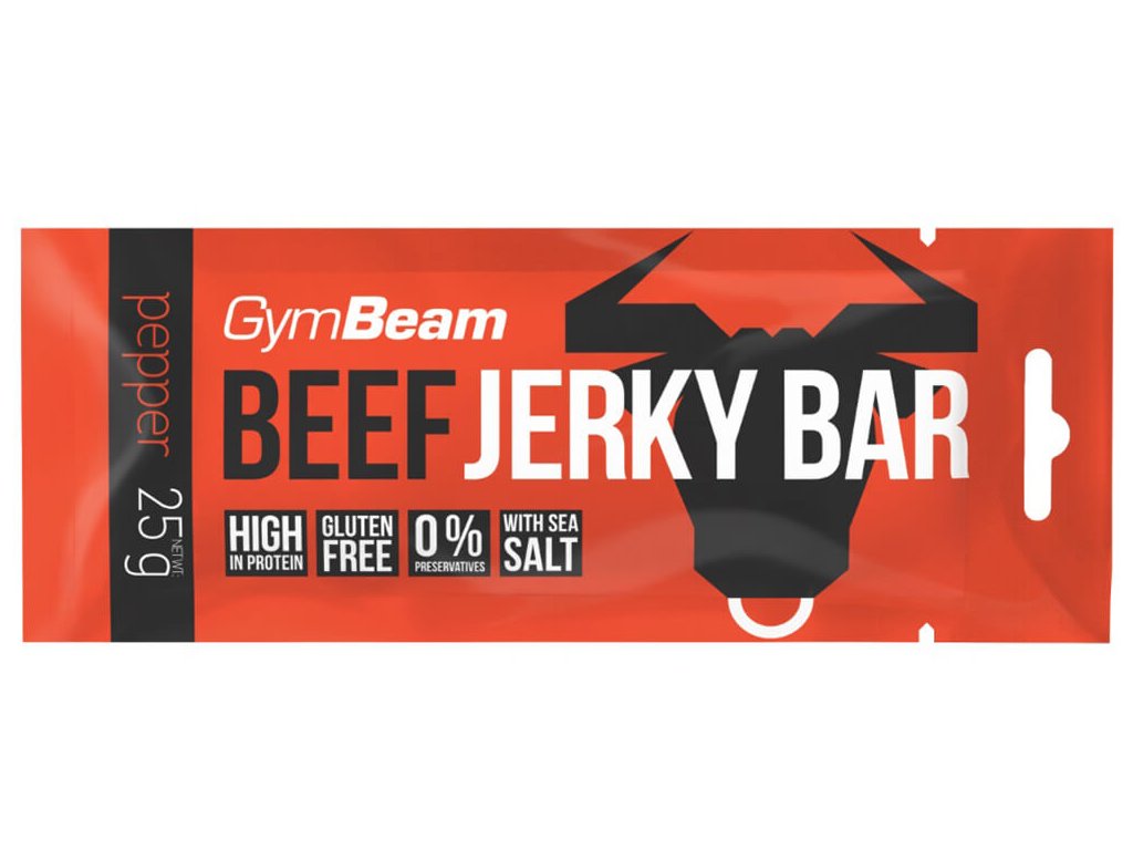 GymBeam Beef Jerky Bar kořeněné je praktická a chutná masová tyčinka vyrobená ze 100% prémiového hovězího masa podle tradiční receptury. Nabízí vysoký obsah bílkovin a nízký podíl tuku, takže je skvělou alternativou ke klasickým proteinovým tyčinkám plným cukru nebo zbytečných přísad.