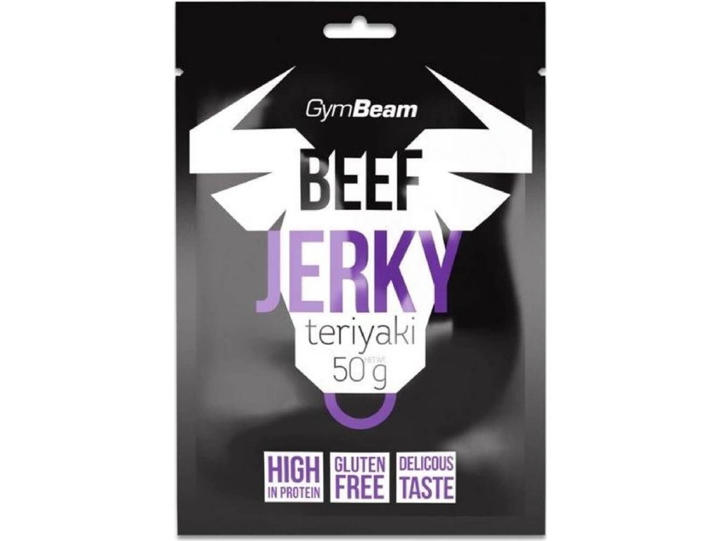 GymBeam Beef Jerky teriyaki je sušené hovězí maso s jemně nasládlou příchutí inspirovanou japonskou omáčkou teriyaki, která dodává každému soustu exotický nádech a lahodnou vyváženost sladkého a slaného.