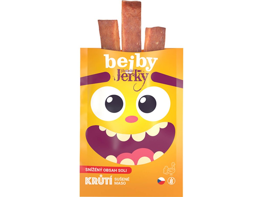 Jihočeské Jerky Bejby Krůtí je jemná a praktická varianta sušeného masa, která potěší každého, kdo hledá chutnou a zároveň šetrnou svačinku. Díky ještě měkčí konzistenci se snadno kouše, takže je vhodná i pro děti nebo citlivější strávníky.