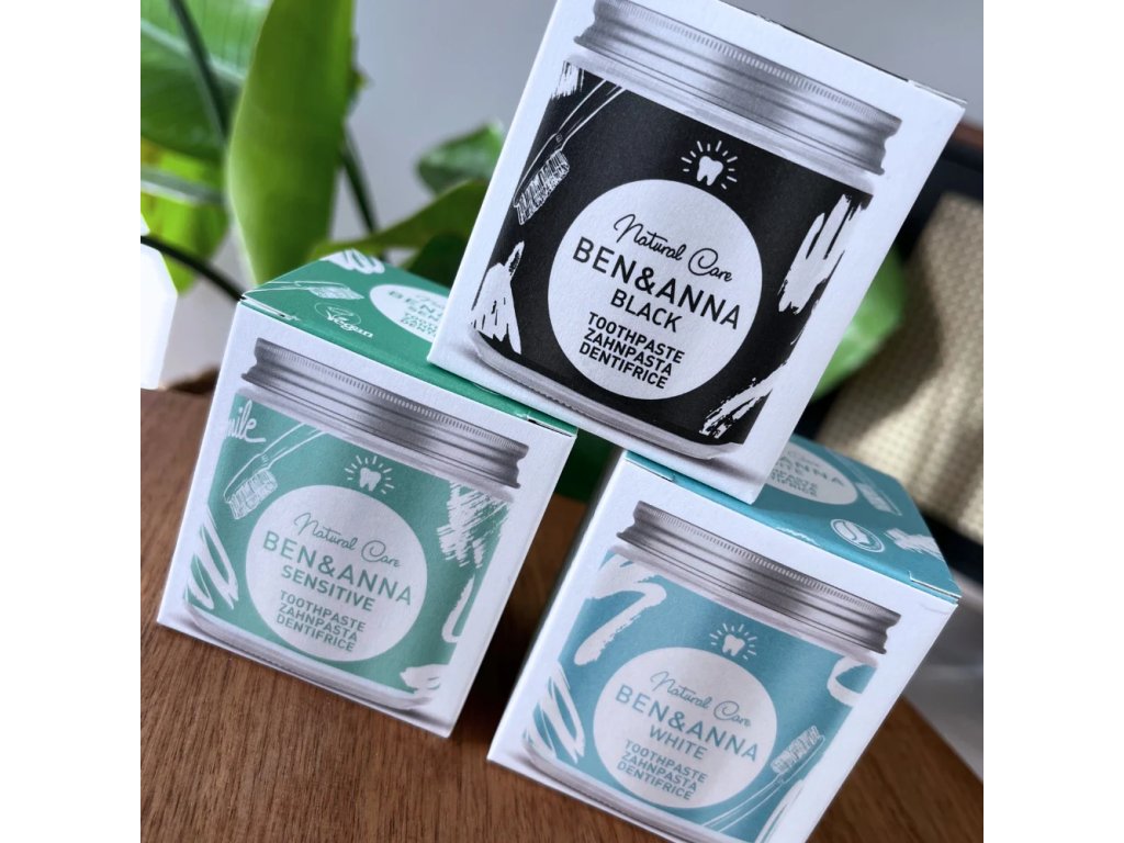 Hledáte tu pravou zubní pastu, kterou můžete pravidelně opečovávat citlivé zuby a dutinu ústní? A co třeba tahle, ve skleněné dózičce od mladé německé značky Ben & Anna? Nejen, že krásně voní a zanechává velmi příjemný a svěží pocit v ústech, ale také účinně a důkladně čistí. Díky nízkému koeficientu abrazivity (RDA 70) pomáhá chránit citlivou zubní sklovinu. Extrakty z heřmánku a rakytníku zklidňují i podrážděné dásně. . Pasta příjemně pění a už během čištění budete vnímat svěžest, která se rozvine ve vašich ústech.. Neobsahuje ftaláty, parabeny, mikroplasty SLS ani formaldehyd.Doplňkové parametry