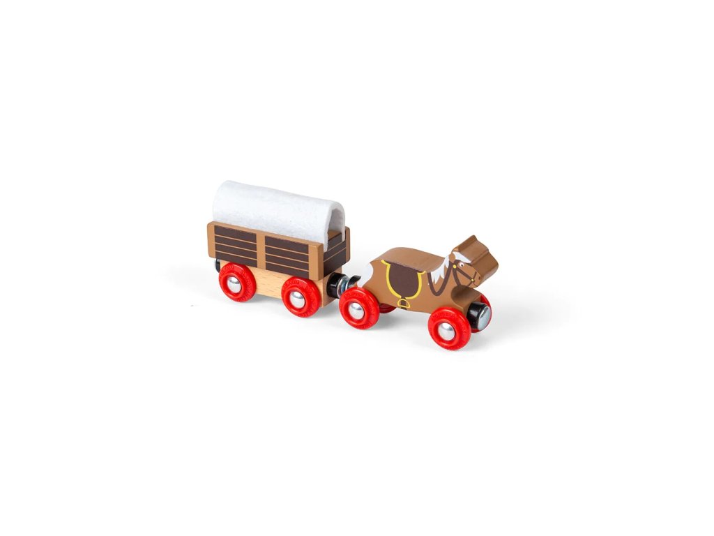 Dřevěná vlaková souprava s motivem Divokého západu, je fascinující hračka pro děti, která přináší dětem dobrodružství do dětského pokoje. Tato sada obsahuje celkem 62 dílů, které umožňují dětem vytvářet různé příběhy a scénky z prostředí Divokého západu. Naskočte na vlak a přepravte své kočáry s koňmi a povozy po klikaté dřevěné dráze, kolem starého ranče a nahoru do horského zlatého dolu. Tato rozsáhlá vlaková souprava je vyrobena z FSC® dřeva, je dodávána se spoustou tematických dřevěných doplňků k vlaku, včetně figurek kovbojů, koní, domů, kaktusů a stepního běžce. Hlavní vlastnosti: 62 dílná dřevěná vlaková souprava s motivem divokého západuvlaková souprava a koňský povoz s magnetickými spojkami1 ks horský tunel zlatý důl29 ks dřevěné vláčkodráhyvyrobeno ze dřeva s certifikací FSC®kompatibilní s vláčkodráhami Bigjigs Toys Značka a certifikát FSC® (Forest Stewardship Council) zaručuje, že dřevo, ze kterého byl produkt vyroben, nebylo vytěženo nelegálně a pochází z lesů obhospodařovaných šetrným či přírodě blízkým způsobem, ve kterém jsou dodržovány přísné environmentální a sociální požadavky. Značka FSC® na výrobku znamená, že svým nákupem pomáháte chránit lesy a podporujete šetrné, odpovědné či přírodě blízké hospodaření, díky kterému jsou naše lesy stabilnější, zdravější, mají přirozenou druhovou skladbu a lépe odolávají negativním následkům klimatických změn.Doplňkové parametry