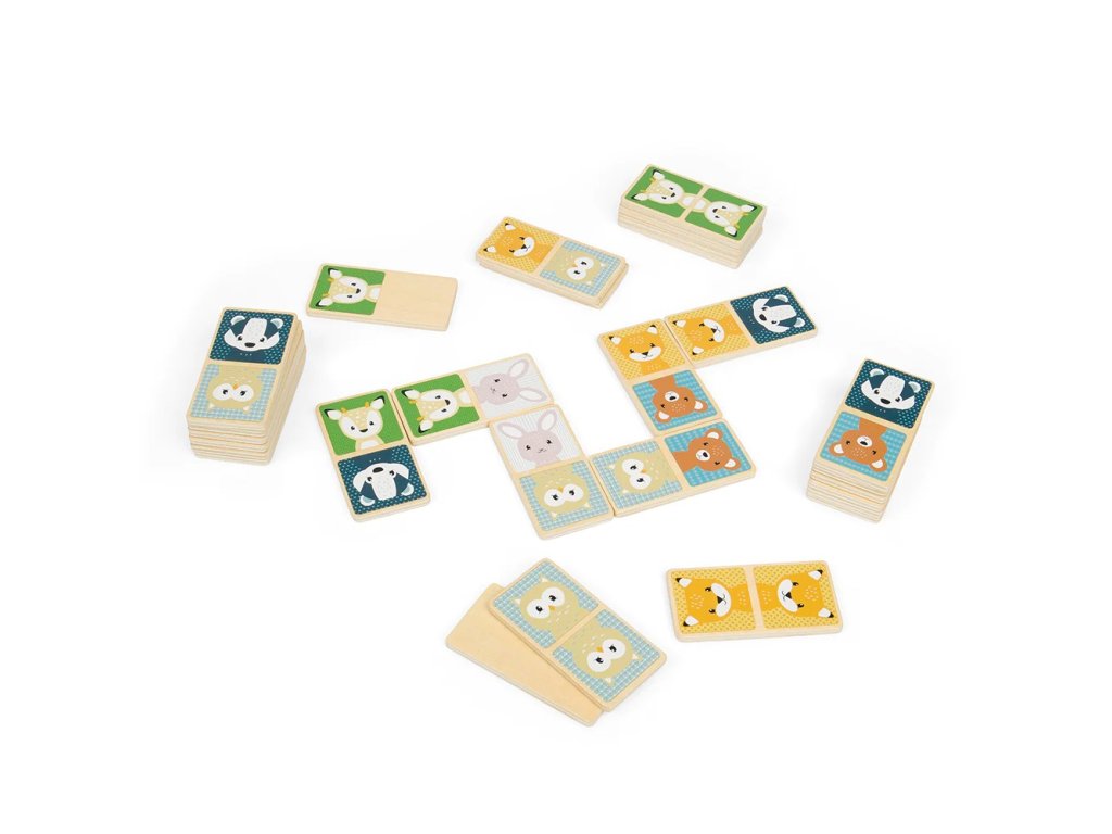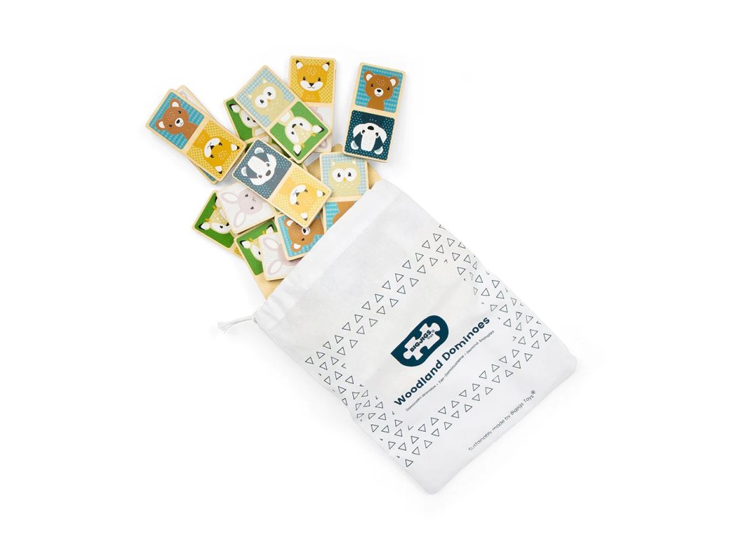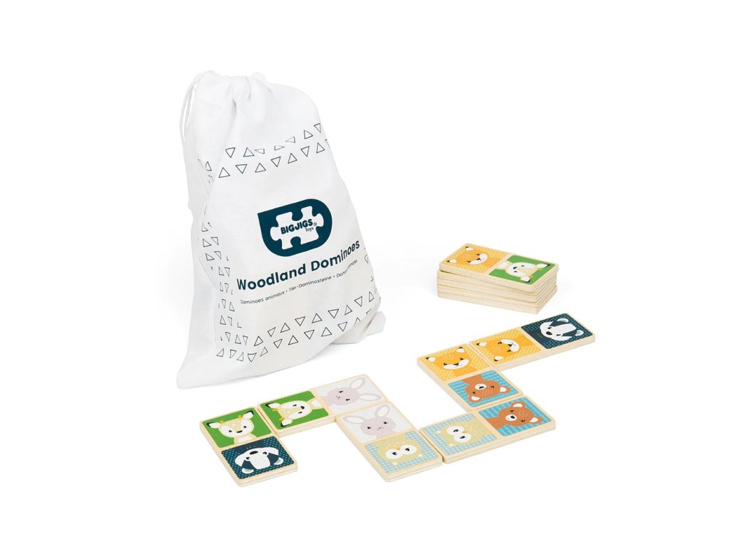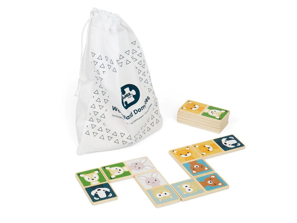 Krásné domino s lesními zvířátky má 28 dílků, které mají velikost tak akorát pro dětské ruce. Ideální hra na cesty, která děti nadchne nejen veselou ilustrací, je zabalená v bavlněném pytlíku. Děti se naučí trpělivosti a všemu dalšímu, co patří ke hře ve více lidech.Vyrobeno z eticky získaného a udržitelného dřeva s certifikací FSC®, malováno netoxickými barvami a laky. Odpovídá evropským bezpečnostním standardům. Hlavní vlastnosti: dětské domino28 dílků s ilustracemi zvířat1 bavlněný pytlíkvyrobeno z FSC® certifikovaného dřevavhodné od 2 let Jak hrát domino:Dílky domina položte na stůl nebo jinou hrací plochu lícem dolů a zamíchejte. Každý hráč si vezme 6 dílků domina (pokud je více než 3 hráčů, každý si vezme 6 dílků domina), které nesmí vidět nikdo z protihráčů! Ostatní domina dejte stranou na hromádku.Začínající hráč položí jedno domino obrázkem nahoru na hrací plochu. Druhý hráč musí položit navazující domino. Pokud žádný z jeho dílků nelze navázat na již položené domino, přibírá si tento hráč domino z hromádky. Na řadě je další hráč. Takto se hráči střídají na řadě, dokud se jeden z nich nezbaví všech dílků domina. Tento hráč vítězí a hra je u konce. Značka a certifikát FSC® (Forest Stewardship Council) zaručuje, že dřevo, ze kterého byl produkt vyroben, nebylo vytěženo nelegálně a pochází z lesů obhospodařovaných šetrným či přírodě blízkým způsobem, ve kterém jsou dodržovány přísné environmentální a sociální požadavky. Značka FSC® na výrobku znamená, že svým nákupem pomáháte chránit lesy a podporujete šetrné, odpovědné či přírodě blízké hospodaření, díky kterému jsou naše lesy stabilnější, zdravější, mají přirozenou druhovou skladbu a lépe odolávají negativním následkům klimatických změn.Doplňkové parametry