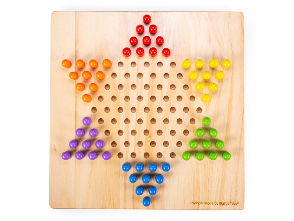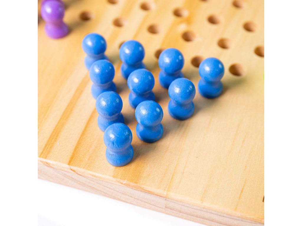 Kdo přemístí své kolíčky na opačnou stranu herní desky dříve? Tradiční hra v atraktivním dřevěném provedení může pomoci rozvíjet logiku, soustředění i jemnou motoriku. Pestrými barvami ihned zaujme dětskou pozornost a na dotek příjemný přírodní materiál pomáhá stimulovat i hmat. Vyrobeno z kvalitních, odpovědně získaných surovin. Hlavní vlastnosti: hrací deska a 60 figurekpro 2–6 hráčůatraktivní dřevěné zpracováníDoplňkové parametry
