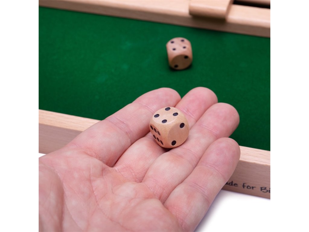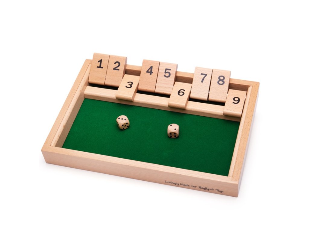Zábavná hra, která dětem zlepší jejich numerické dovednosti. Hoďte dvojicí kostek a zavřete destičky, (maximálně dvě) které se rovnají celkovému počtu hodů kostkou. Pokračujte ve hře dokud nebude možné zavřít žádné další destičky. Zbylý součet neotočených destiček si zapište. Hraje se do určeného počtu trestných bodů, zpravidla do 200, vyhrává pak hráč s nejmenším počtem trestných bodů. Vzdělávací a zábavná hra, může ji hrát jeden nebo více hráčů. Tato dřevěná verze hry v tradičně vyrobeném dřevěném rámu s plstěnou hrací deskou. Vyrobeno z vysoce kvalitních, zodpovědně získaných materiálů. Splňuje aktuální evropské bezpečnostní normy. Skládá se ze 3 hracích prvků. Hlavní vlastnosti: hra pro jednoho nebo více hráčůobsahuje 2 kostky a hrací deskupodporuje matematické dovednostiDoplňkové parametry