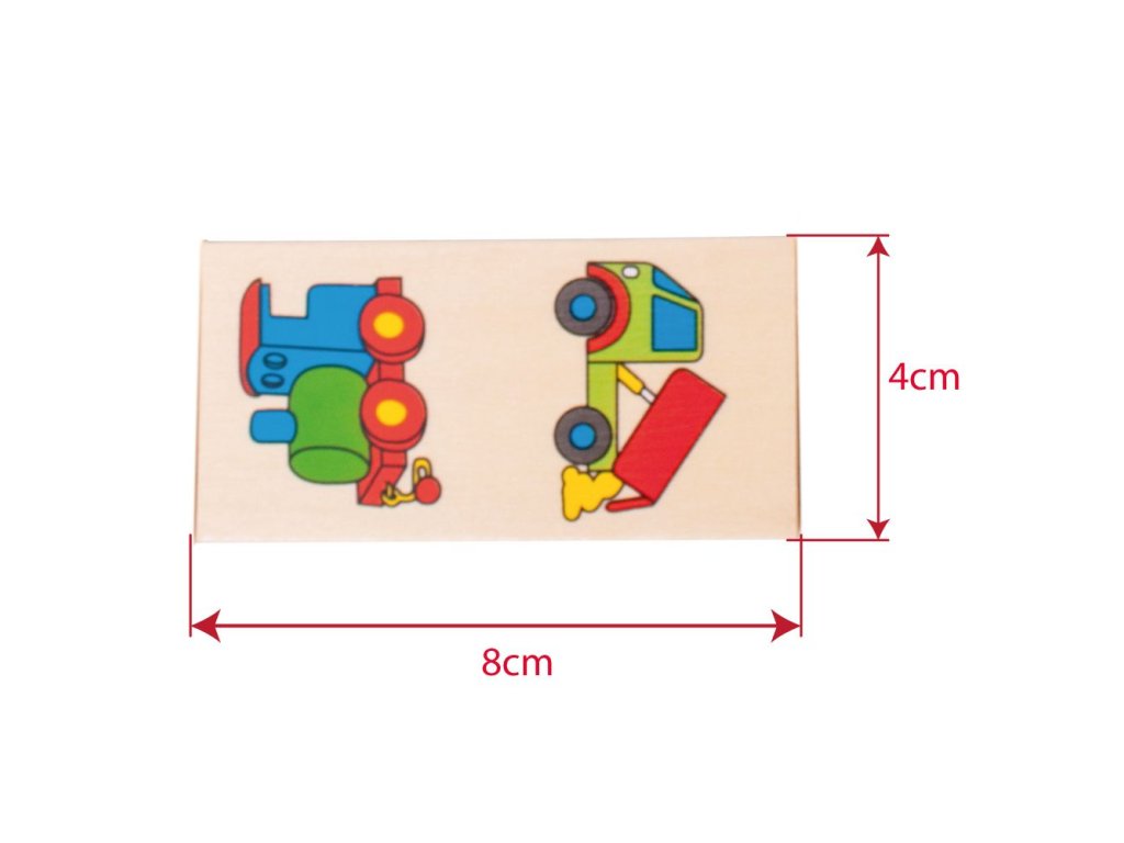 Toto pestrobarevné dřevěné domino je ideální svou velikostí pro dětské ručičky. Nadčasová hra, která si během let jistě najde mnoho využití a děti si s ní užjí mnoho zábavy. Všechny dílky lze uložit do dřevěné krabičky s posuvným víkem. Pomáhá rozvíjet obratnost, schopnosti porovnávání a soustředění. Vyrobeno z vysoce kvalitních a zodpovědně získaných materiálů. Odpovídá současným evropským bezpečnostním normám. Obsahuje 28 ks dílků domina. Hlavní vlastnosti: veselý a jednoduchý motiv dopravních prostředkůrozvíjí senzomotorické schopnosti dětí obsahuje 28 dílků, které lze uložit do krabičky s posuvným víkemDoplňkové parametry