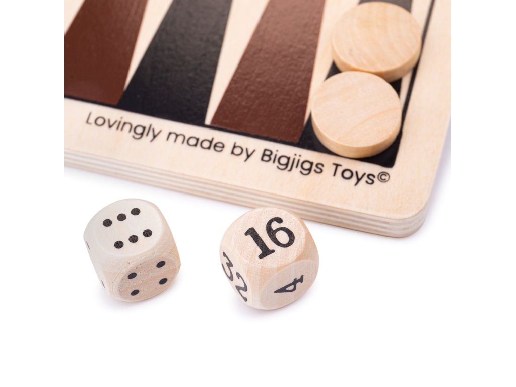 Klasická hra pro všechny věkové kategorie, u nás známá také jako Vrhcáby, jejíž pomocí je možno rozvíjet logiku a strategické myšlení. Robustní provedení v přírodních barvách je zároveň odolné i atraktivní. Skvěle doplní každý herní kout, klubovnu, či kavárenský stolek. K výrobě hry byly použity výhradně kvalitní a zodpovědně získané materiály. Hlavní vlastnosti: hrací deska, 30 hracích kamenů, 4 hrací a 1 sázecí kostkapro 2 hráčeatraktivní dřevěné zpracováníDoplňkové parametry