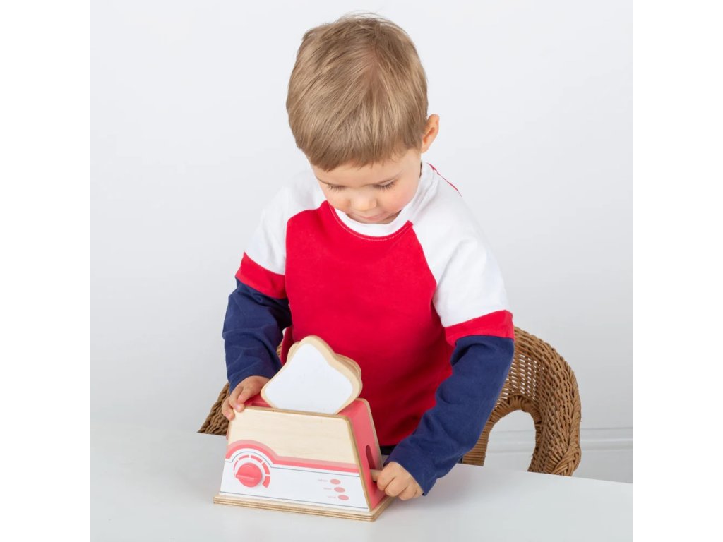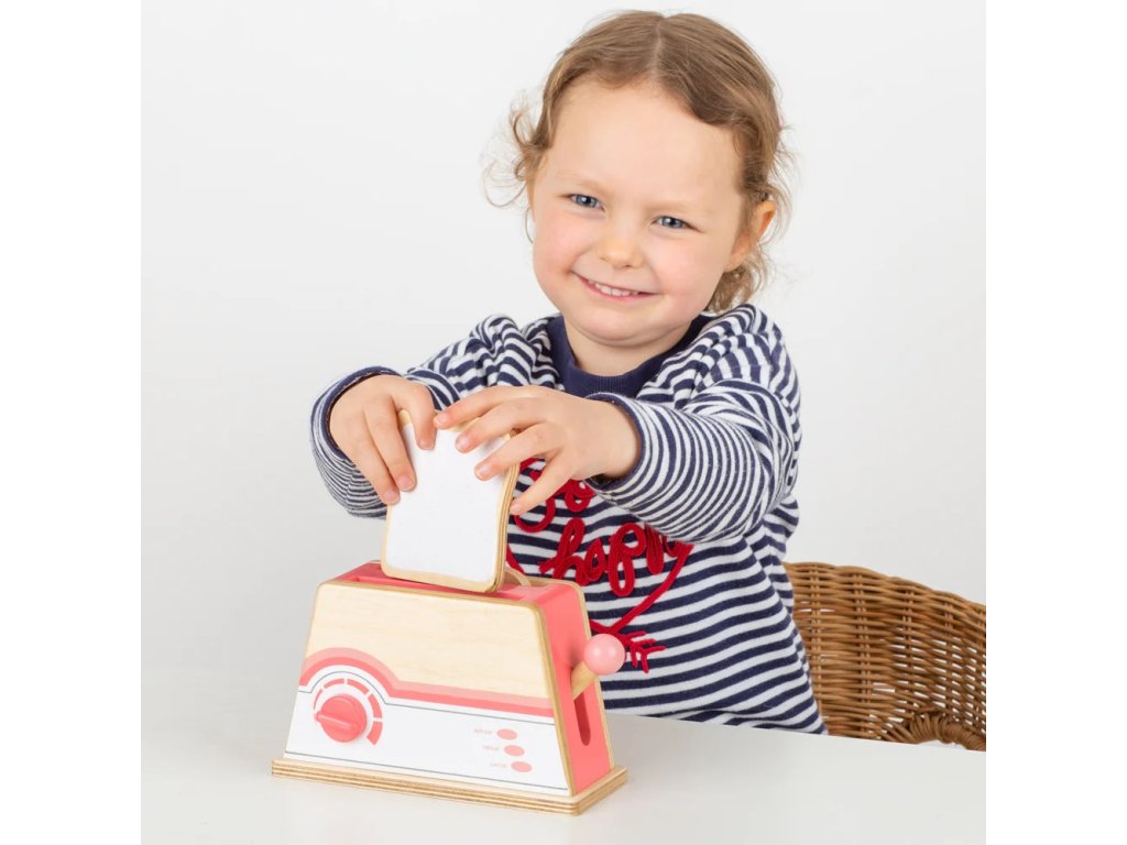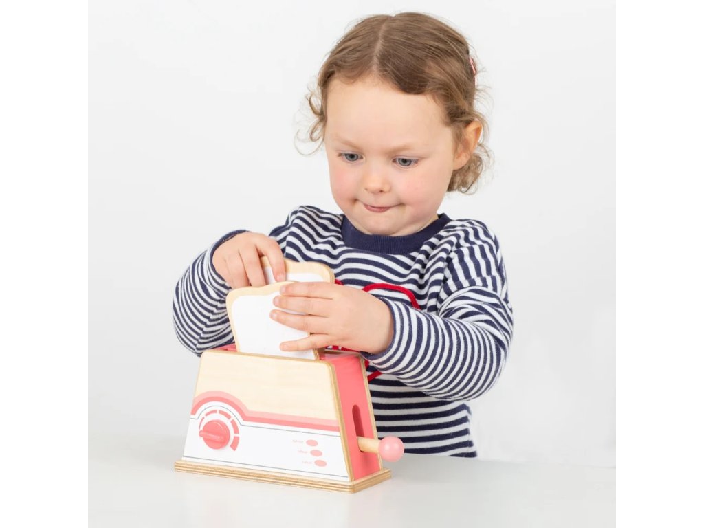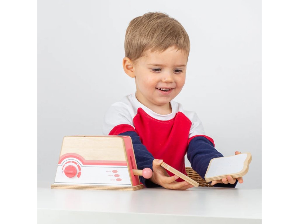 Je čas na tousty s dřevěným toustovačem Bigjigs Toys, skvělým doplňkem do každé dřevěné kuchyňky. Vložte dřevěné plátky chleba do štěrbinového toustovače a poté nastavte volič na preferované nastavení. Ať už to vaše ratolest má rádo lehce opečené nebo dobře propečené, existuje nastavení, které bude vyhovovat každému. Po opečení vytáhněte: Hlavní vlastnosti: podporuje kreativní a nápadité hranívyrobeno z vysoce kvalitních, zodpovědně získaných materiálůsplňuje aktuální evropské bezpečnostní normyDoplňkové parametry