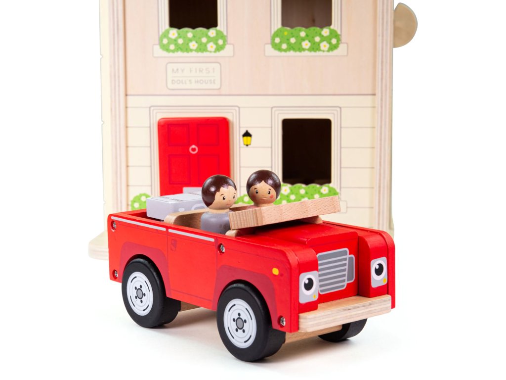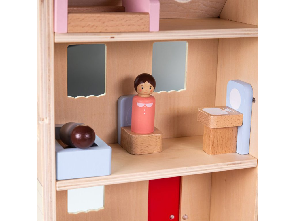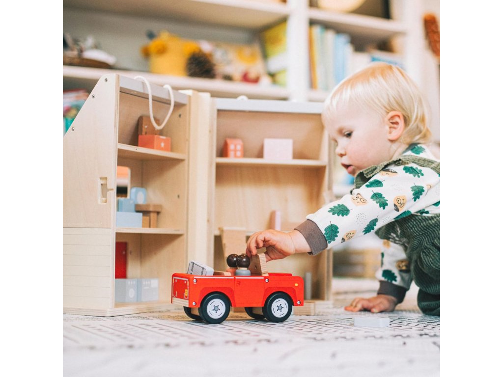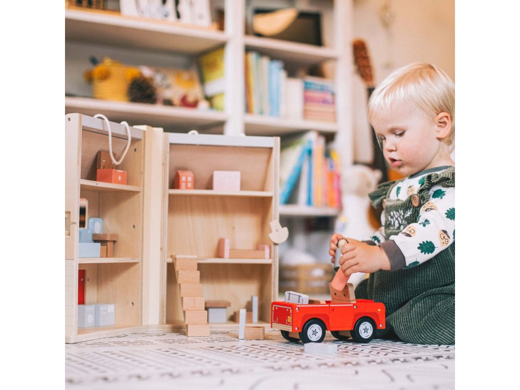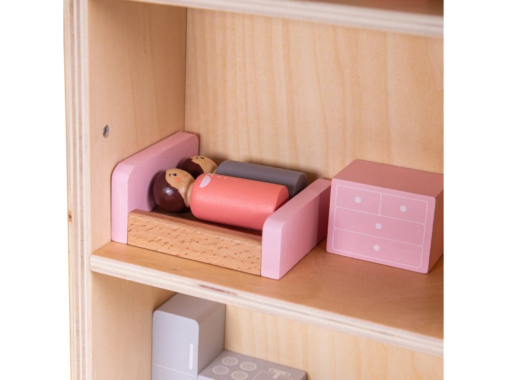 Rozložením detailně zpracovaného domečku odhalíte dětem roztomilý miniaturní svět, ve kterém mohou rozehrát ty nejfantastičtější příběhy a přitom po krůčcích budovat své sociální dovednosti. V jeho třech podlažích mohou děti různě přestavovat nábytek a uvádět do rozmanitých situací dvojici figurek. Součástí soupravy je také atraktivní autíčko, se kterým mohou obyvatelům domečku připravit další nevšední zážitky. Všechny díly jsou velikostí přizpůsobeny tak, aby je děti mohly snadno uchopit. Přírodní materiál a hladká povrchová úprava zároveň pomáhají stimulovat hmat. Domeček je vybaven provazovým uchem usnadňujícím jeho přenášení a důmyslná západka přitom zabrání, aby se příslušenství uložené uvnitř vysypalo. Celá sada je vyrobena z vysoce kvalitního a zodpovědně získaného dřeva ošetřeného nezávadnými barvami i laky. Hlavní vlastnosti:rozkládací domeček, 13 dílů nábytkového vybavení, 2 figurky a autíčkosnadno přenosný a skladný díky uchu a západceodolné a atraktivní dřevěné zpracováníDoplňkové parametry