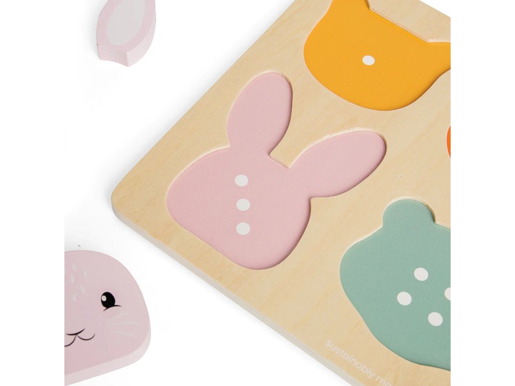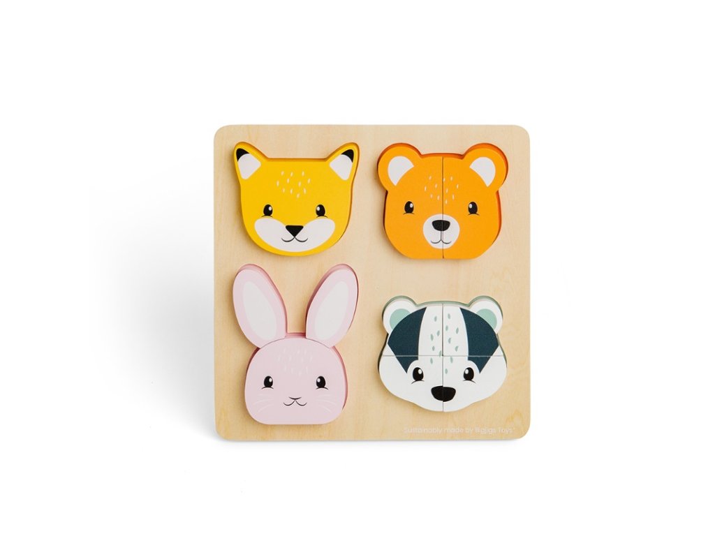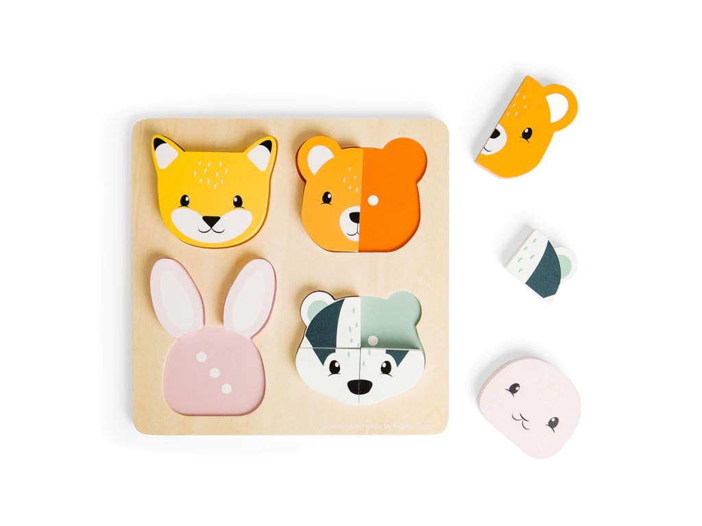 Krásné 10dílné vkládací puzzle děti naučí poznávat zvířátka, barvy a také je uvede do světa počtů. Liška, medvěd, králík a jezevec jsou rozdělení na několik dílků, jako puzzle. Dokážou je děti vložit do správného otvoru? Nápovědou je nejen barva a tvar, ale také označení počtů dílků pomocí teček, hračka je tedy vhodná i pro děti, které zatím neumí poznat čísla. Během vkládání si děti procvičí hmat, zručnost a komunikační schopnosti (pokud si hrají spolu s někým).Vyrobeno z eticky získaného a udržitelného dřeva s certifikací FSC®, malováno netoxickými barvami a laky. Odpovídá evropským bezpečnostním standardům. Hlavní vlastnosti: motorická hračka10 dílkůvyrobeno z FSC® certifikovaného dřevavhodné od 12 měsíců Značka a certifikát FSC® (Forest Stewardship Council) zaručuje, že dřevo, ze kterého byl produkt vyroben, nebylo vytěženo nelegálně a pochází z lesů obhospodařovaných šetrným či přírodě blízkým způsobem, ve kterém jsou dodržovány přísné environmentální a sociální požadavky. Značka FSC® na výrobku znamená, že svým nákupem pomáháte chránit lesy a podporujete šetrné, odpovědné či přírodě blízké hospodaření, díky kterému jsou naše lesy stabilnější, zdravější, mají přirozenou druhovou skladbu a lépe odolávají negativním následkům klimatických změn.Doplňkové parametry