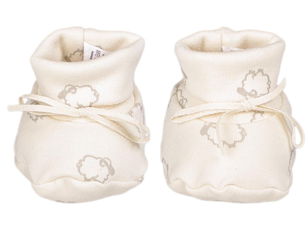První botičky z bio-bavlny pro novorozené miminko. Velikost botiček je 15 až 17, to je délka chodidla cca 10 cm. Botičky se mohou použít s ponožkami, nebo samostatně místo ponožek. Praní na 40° C. Bio-bavlna je vyrobená z GOTS certifikované příze. Capáčky jsou vyrobené v České republice.