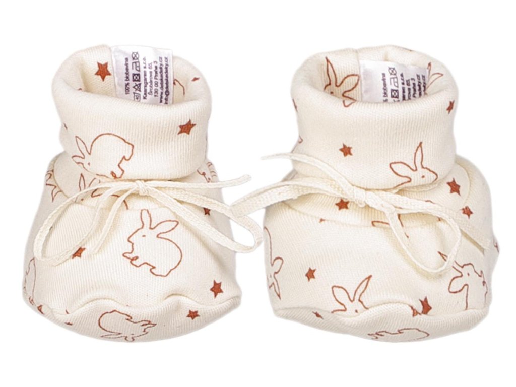 První botičky z bio-bavlny pro novorozené miminko. Velikost botiček je 15 až 17, to je délka chodidla cca 10 cm. Botičky se mohou použít s ponožkami, nebo samostatně místo ponožek. Praní na 40° C. Bio-bavlna je vyrobená z GOTS certifikované příze. Capáčky jsou vyrobené v České republice.