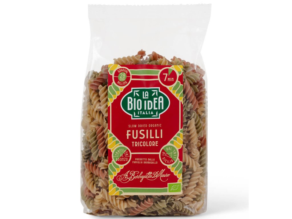 Barevné těstoviny Bio Idea Fusilli Tricolore přinášejí do vaření radost a pestrost v každém soustu. Jsou vyrobené z kvalitní semoliny z tvrdé pšenice a obohacené o přírodní rajčatový a špenátový prášek, díky čemuž vznikají tři chutě i barvy v jednom balení.