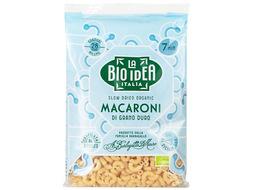 Bio Idea Macaroni Bio jsou sicilské makaróny, které vznikají díky více než stoletým zkušenostem rodiny Barbagallo. Z prvotřídní sicilské tvrdé pšenice se během 24 hodin od semletí zrna stanou hotové těstoviny, a to vše na jediné výrobní lince.