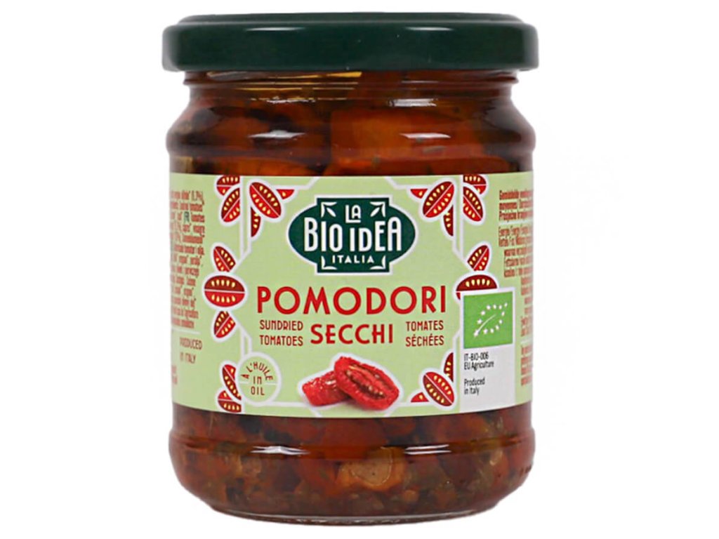 Rajčata sušená* 63 %, slunečnicový olej* 25 %, extra panenský olivový olej* 6,3 %, kapary, vinný ocet*, sůl, česnek*, oregano*, petržel*, bazalka*.