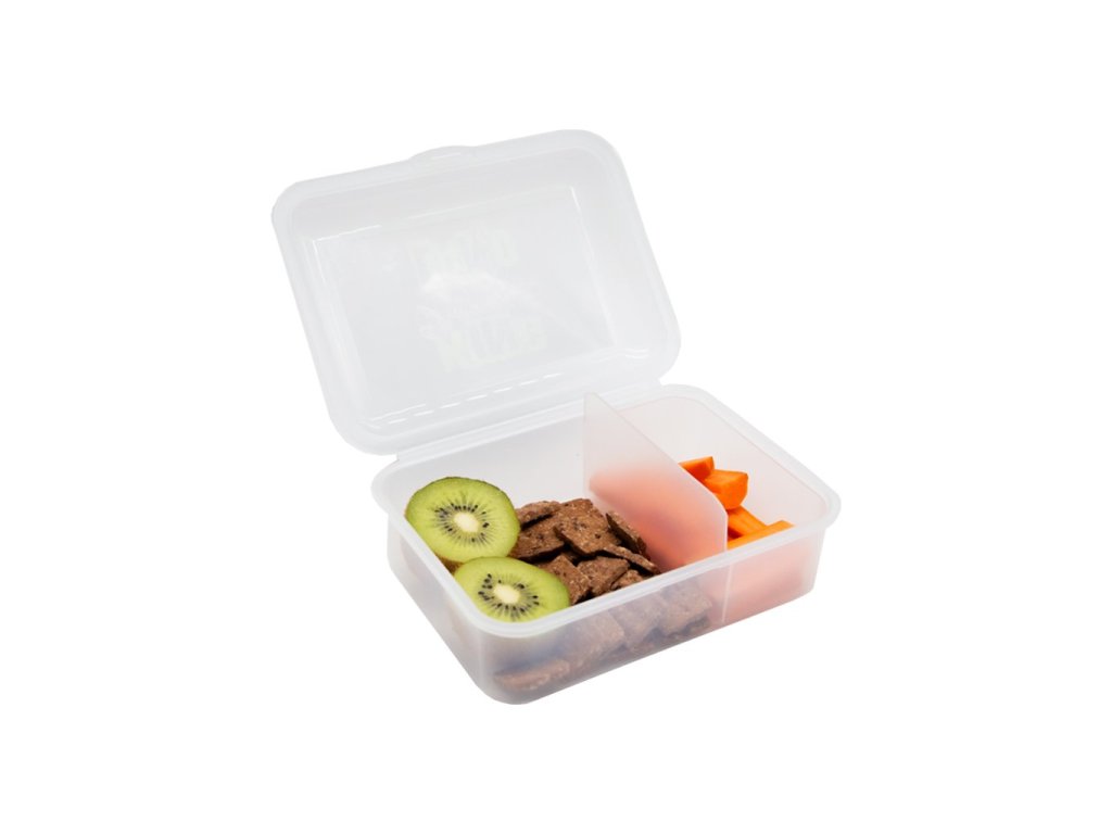 Plastový box na svačinu. Vhodné do myčky, pro ohřev v mikrovlnce nechejte box otevřený.