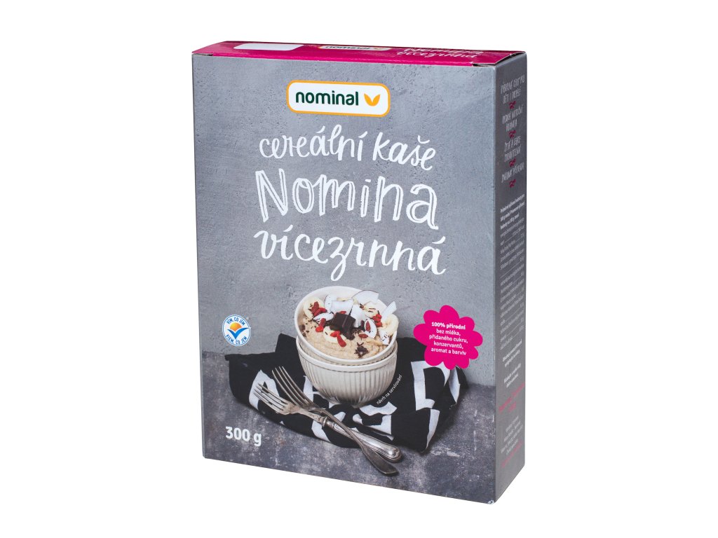 Instantní kaše NOMINA je mimořádná svým vyváženým složením použitých surovin. Tyto zaručují její příznivý glykemický index. Vzhledem k použití celozrnných obilovin má vysoký obsah vlákniny, která příznivě působí na trávicí systém. Díky nové receptuře, která obsahuje i kukuřičné klíčky jež jsou známým zdrojem koenzymu Q 10 a nenasycených mastných kyselin, především kyseliny linolové a kyseliny linolenové, je cereální kaše NOMINA ještě bohatší o látky příznivě působící na lidský organizmus, a také má zvýšený obsah vitamínu E.