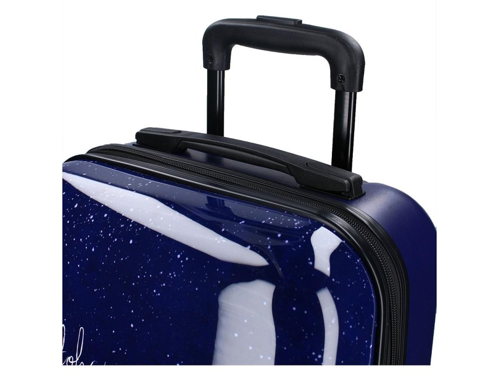 Rozměry: 46 x 33 x 21 cm. Materiál: skořepinová vnější část ABS, uvnitř polyester, Výsuvná rukojeť. Se 4 pojízdnými kolečky. Rozevírací po celém obvodu. Výrobce: Vadobag.Doplňkové parametry
