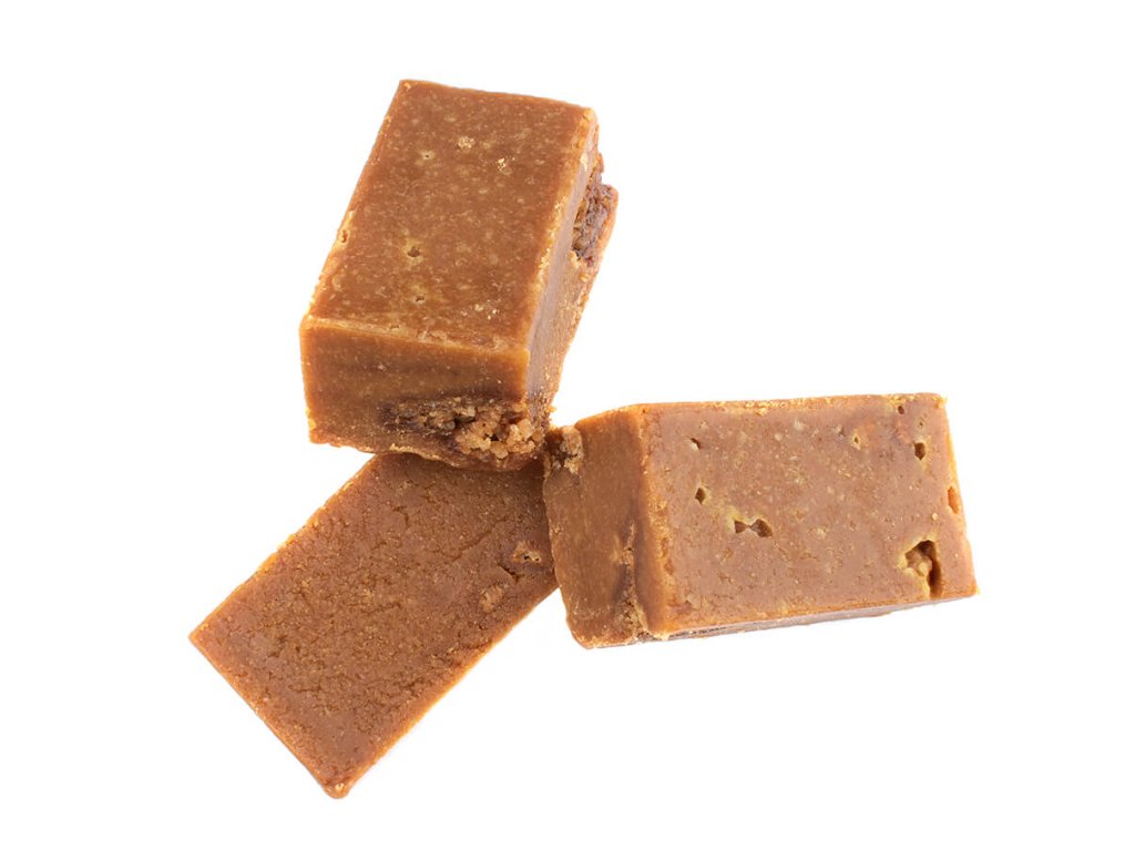 cizrnová mouka 38%, karamel ze třtinového cukru, kokosový tuk, slaný karamel 12% (třtinový cukr, himalájská sůl 2,8%, jedlá soda), rýžová mouka