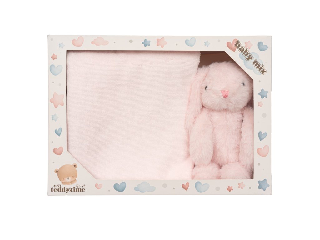 Dárková sada Baby Mix – plyšový zajíček a župan v kartonovém balení