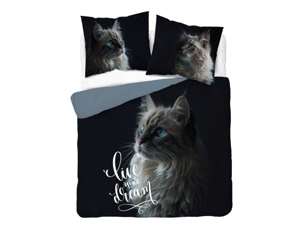 DETEXPOL Francouzské povlečení Kočka Bavlna, 220/200, 2x70/80 cm