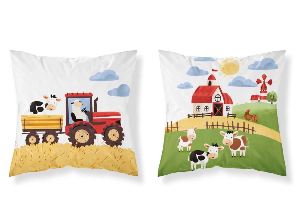 DETEXPOL Povlak na polštářek Farma na kopci červená 40/40 Povlak na polštářek je vyroben ze 100% Bavlny, povlak z každé strany jiný obrázek obrázek, zapínání na zip Materiál: 100% Bavlna Rozměr: 1x 40/40 cmDoplňkové parametry
